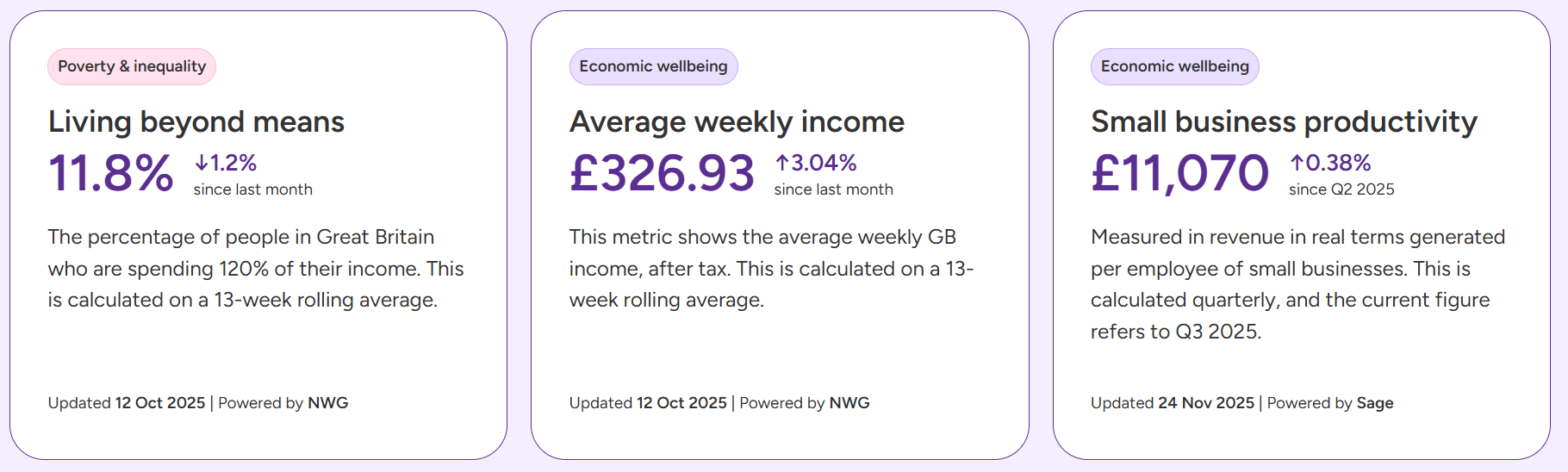 This indicator measures average GB weekly income, based on a 13-week rolling average to 12th October 2025.