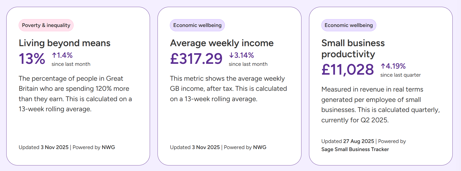 This indicator measures average GB weekly income, based on a 13-week rolling average. This data was observed on 14th September 2025.