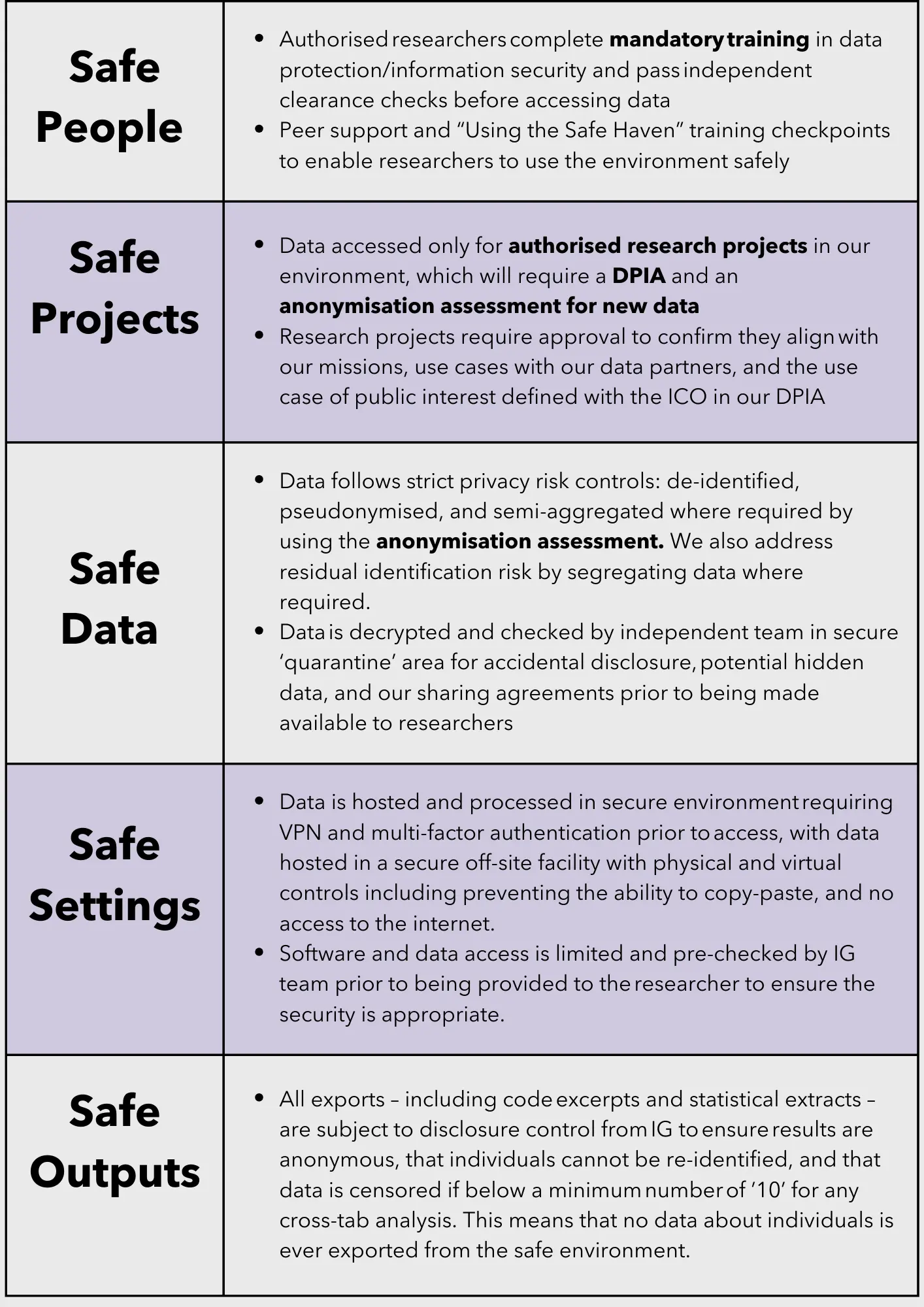 - and crucially testing and scrutinising our Five Safes Framework approach in terms of safeguards.